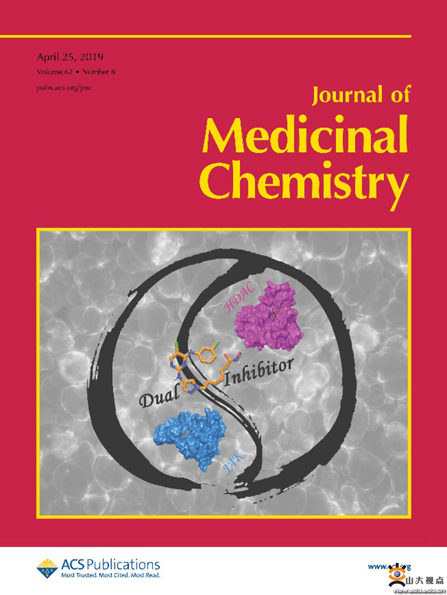 近期,山东大学药学院张颖杰副教授课题组与中国科学院上海药物研究所等研究团队合作,在药物化学专业国际顶级期刊Journal of Medicinal Chemistry以封面论文的形式发表了题为“Discovery of Novel Janus Kinase (JAK) and Histone Deacetylase (HDAC) Dual Inhibitors for the Treatment of Hematological Malignancies”的研究成果。